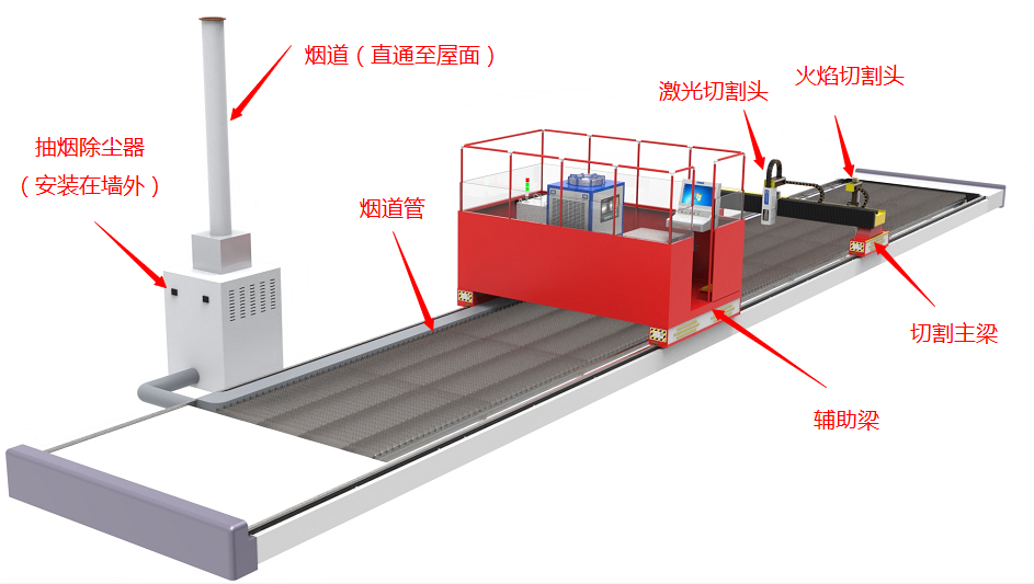 圖中煙塵凈化設備,能很好地解決切割環(huán)境污染。屬于選配件。