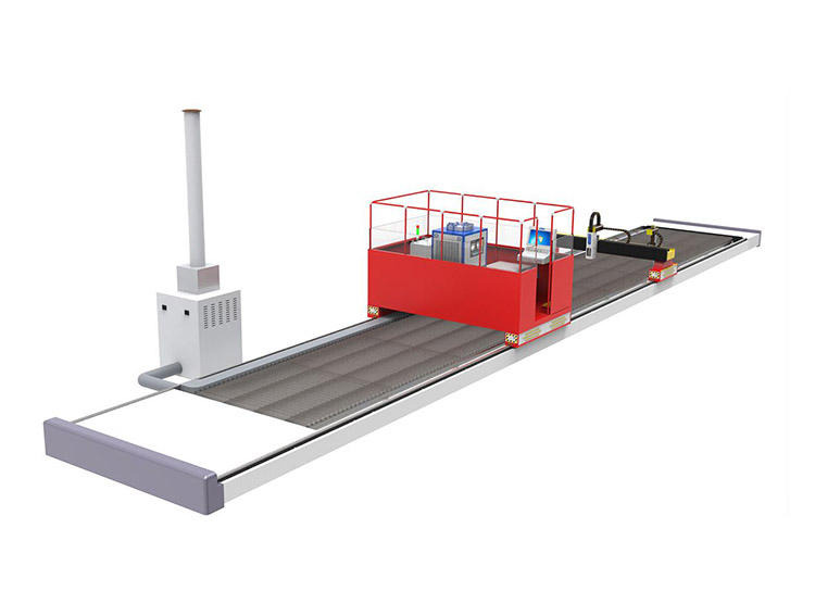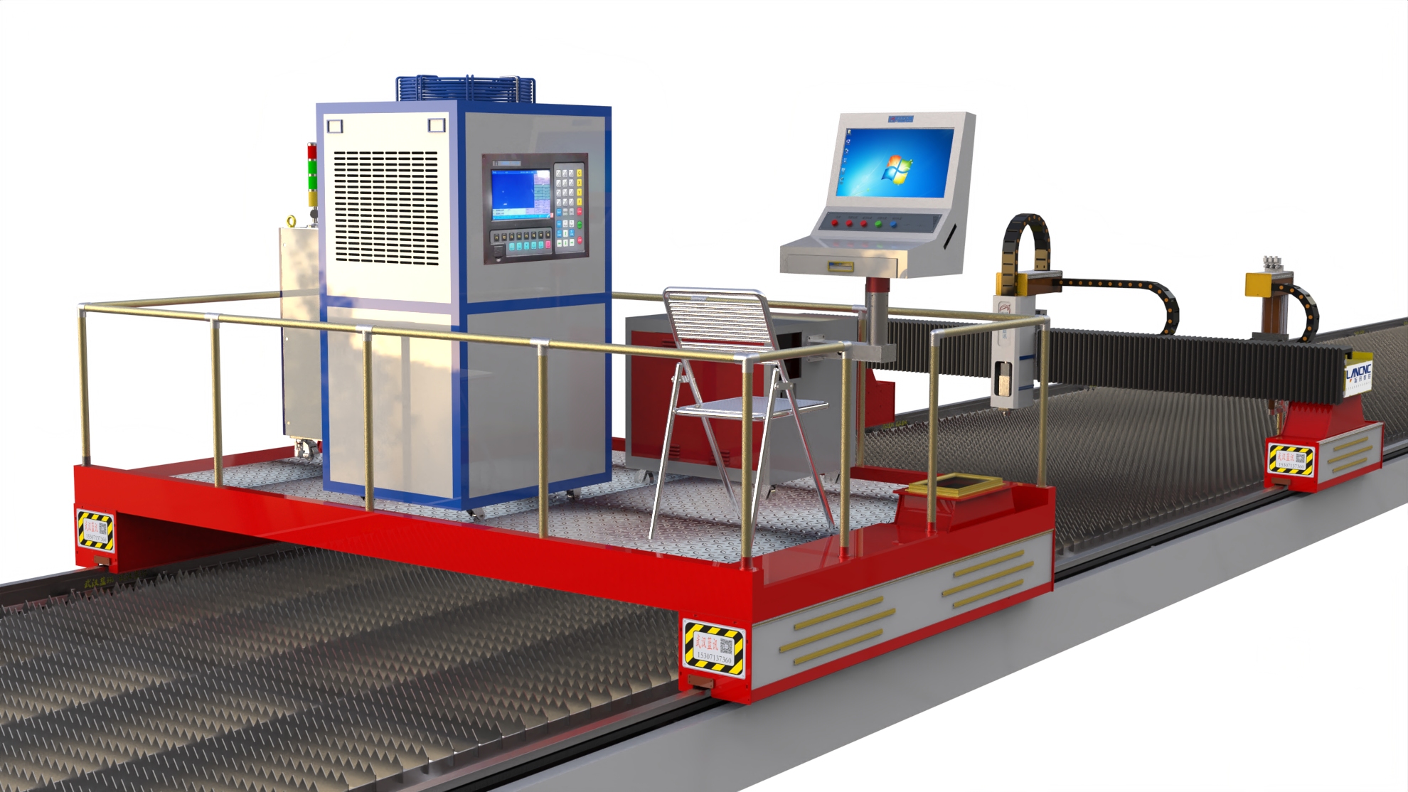激光器、冷水機、控制系統(tǒng)、等離子電源等設(shè)備組合到輔助梁上,切割頭梁高速切割移動,輔助梁與切割頭主梁保持一定的距離范圍,并平穩(wěn)柔性地跟隨主梁移動。