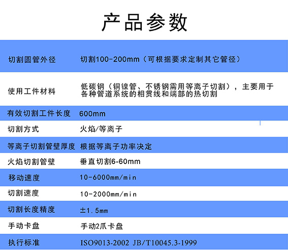 2.有效切割管材直徑:100mm-200mm;